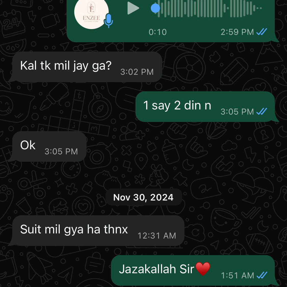 enzeecollection@gmail.com or contact 03390033103] — we’re happy to assist you!